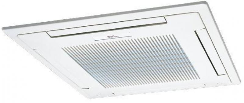 Klimatyzatory kasetonowe występują także w specjalnym kompaktowym rozmiarze 600x600 mm, czyli w rozmiarze standardowego kasetonu sufitu podwieszanego, co bardzo ułatwia montaż jednostki.